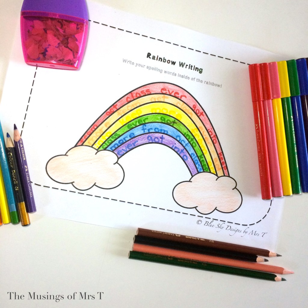 Adding a pop of colour to your spelling work is a super simple way to keep kids more engaged. Using a simple ‘rainbow words’ activity is an easy addition to your weekly spelling rotations. Students are often excited at the chance to use their coloured pencils and they’re getting some useful spelling repetition happening. If you want to try this activity, I have a set of templates that you can find here.